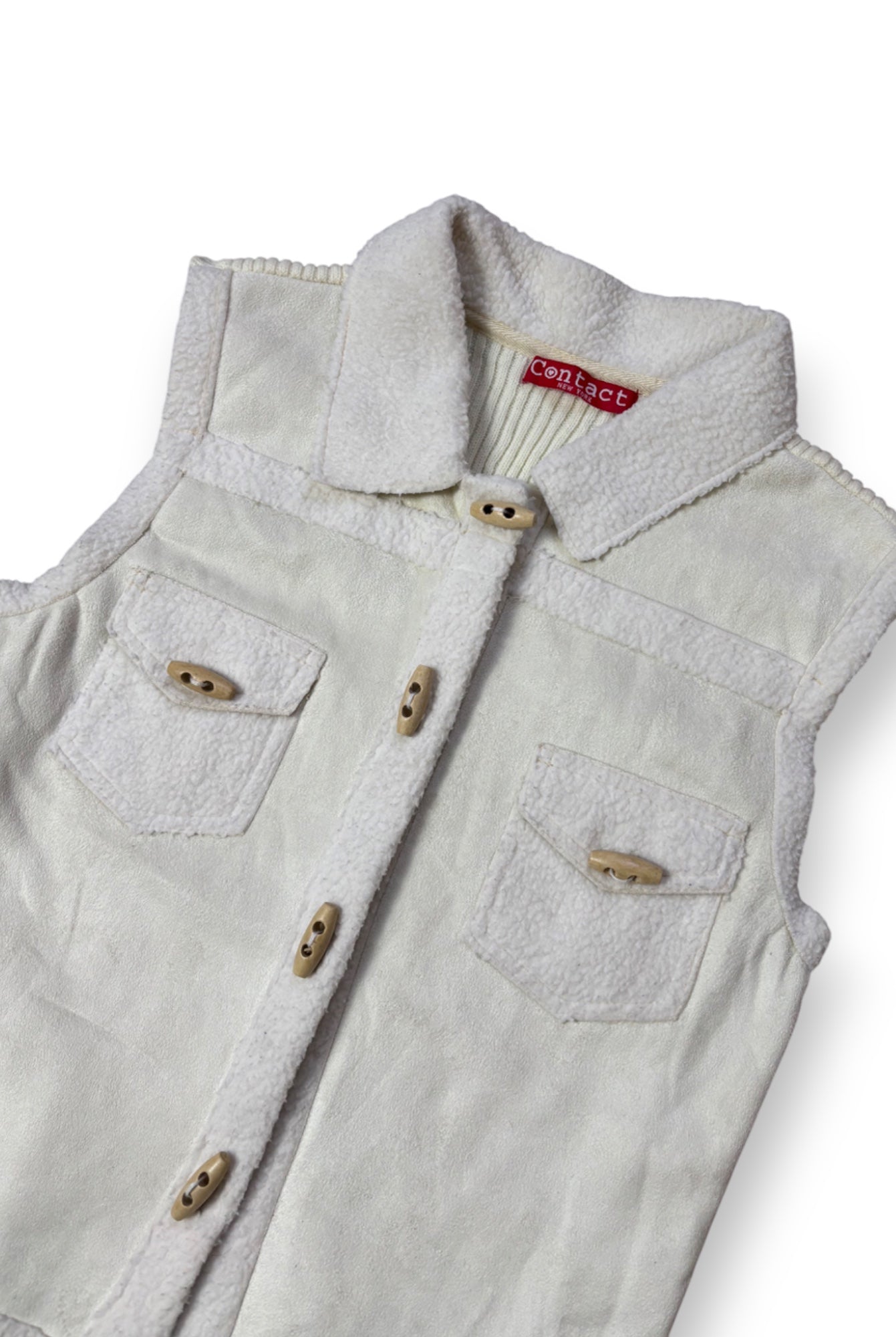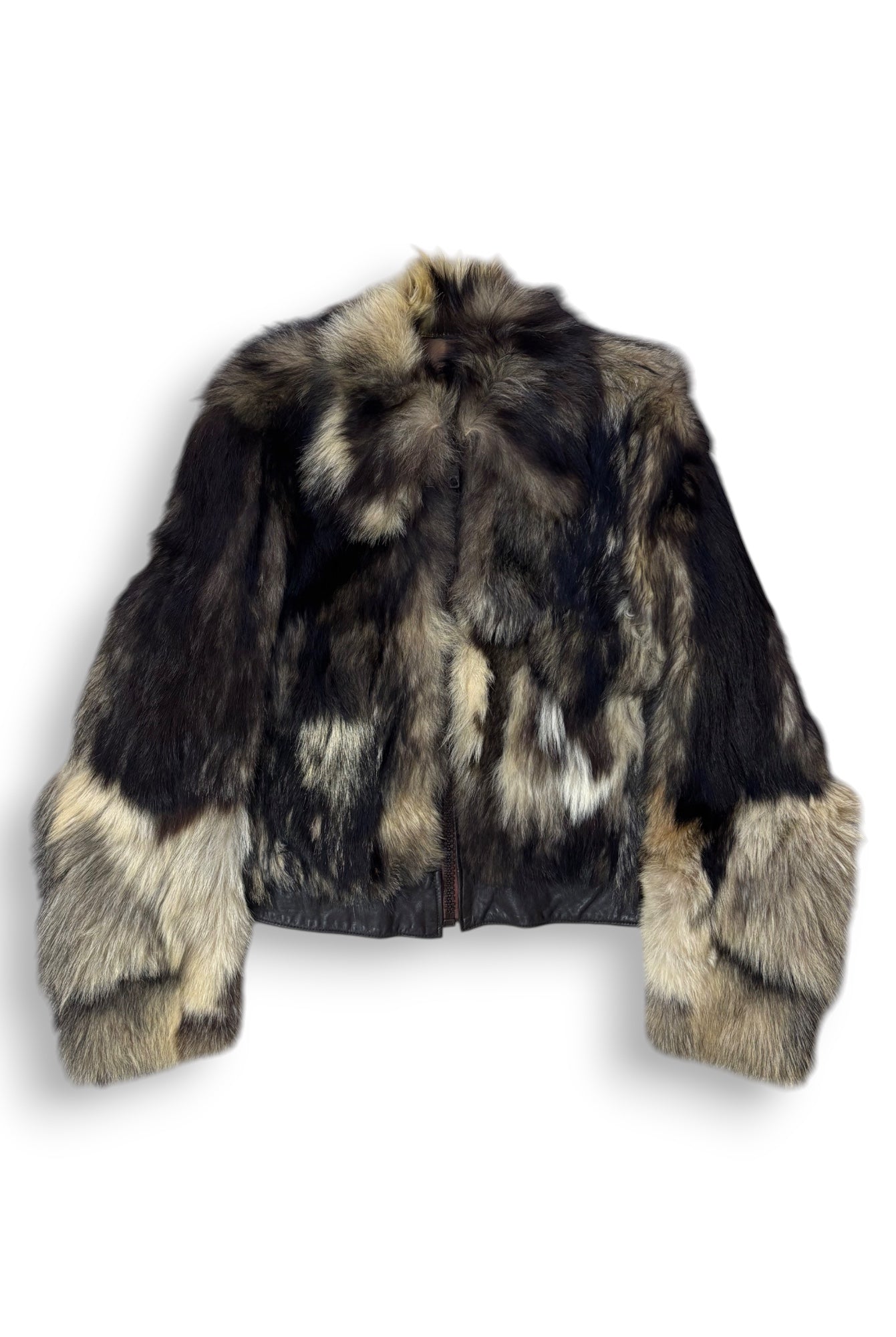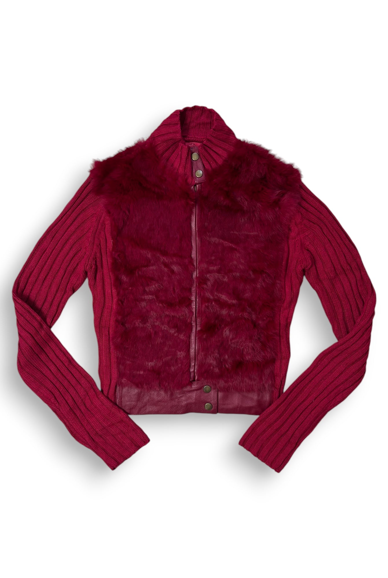 Berry Red Knit Jacket With Faux Fur Front Panel