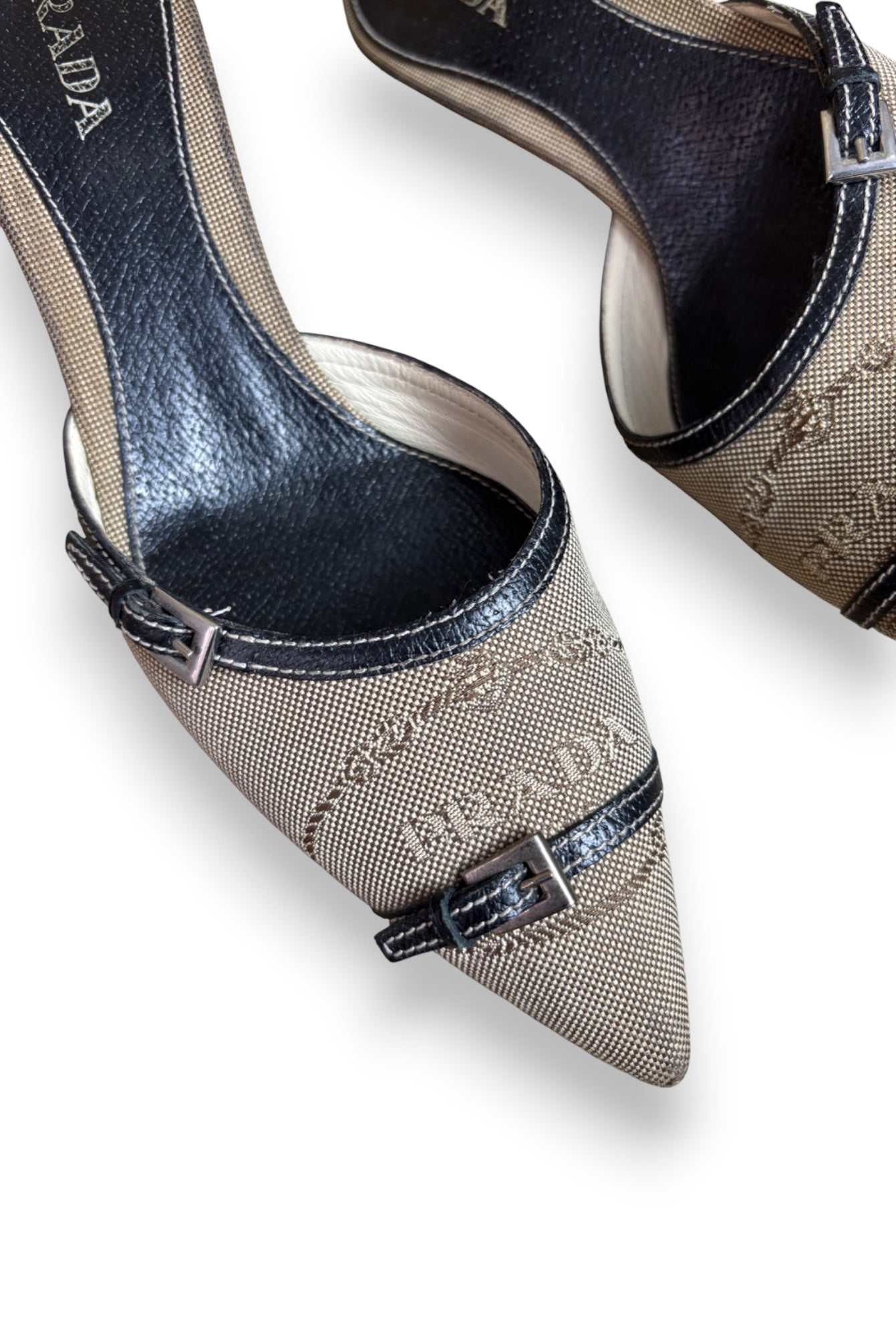 Prada Tan Monogram Pointed-Toe Mules